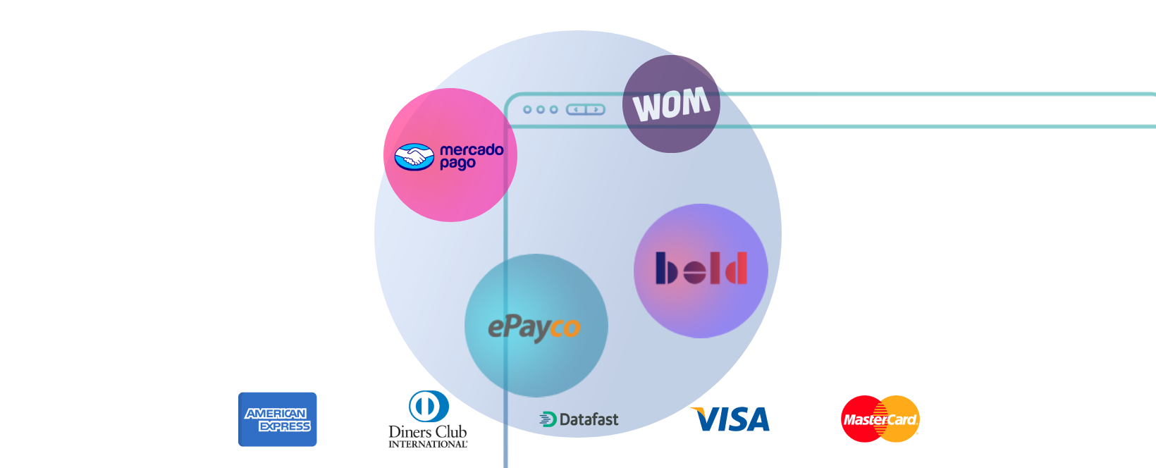 - Tarjetas de crédito y débito (Visa, Mastercard, Amex, Diners)